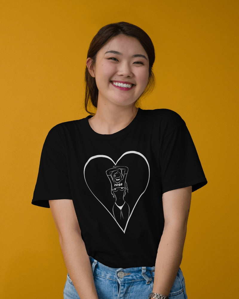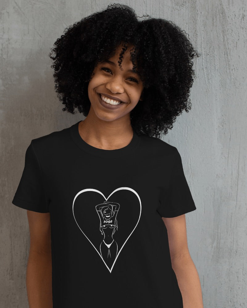 Indulge in the allure of our Heart's Desire Bikini Babe Tee, featuring a sultry girl nestled within a heart. She exudes confidence and relaxation, with her hands resting on her head and a serene expression that captivates.